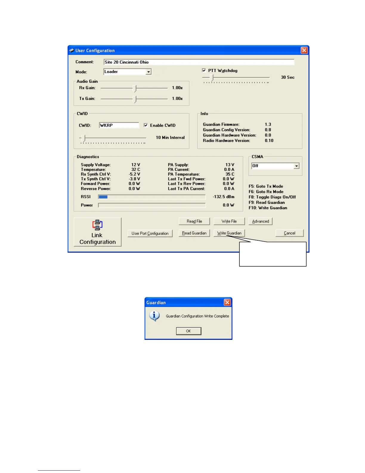 Programming of the Guardian is very fast. The message “Guardian Configuration Write Complete” appears. Click OK.