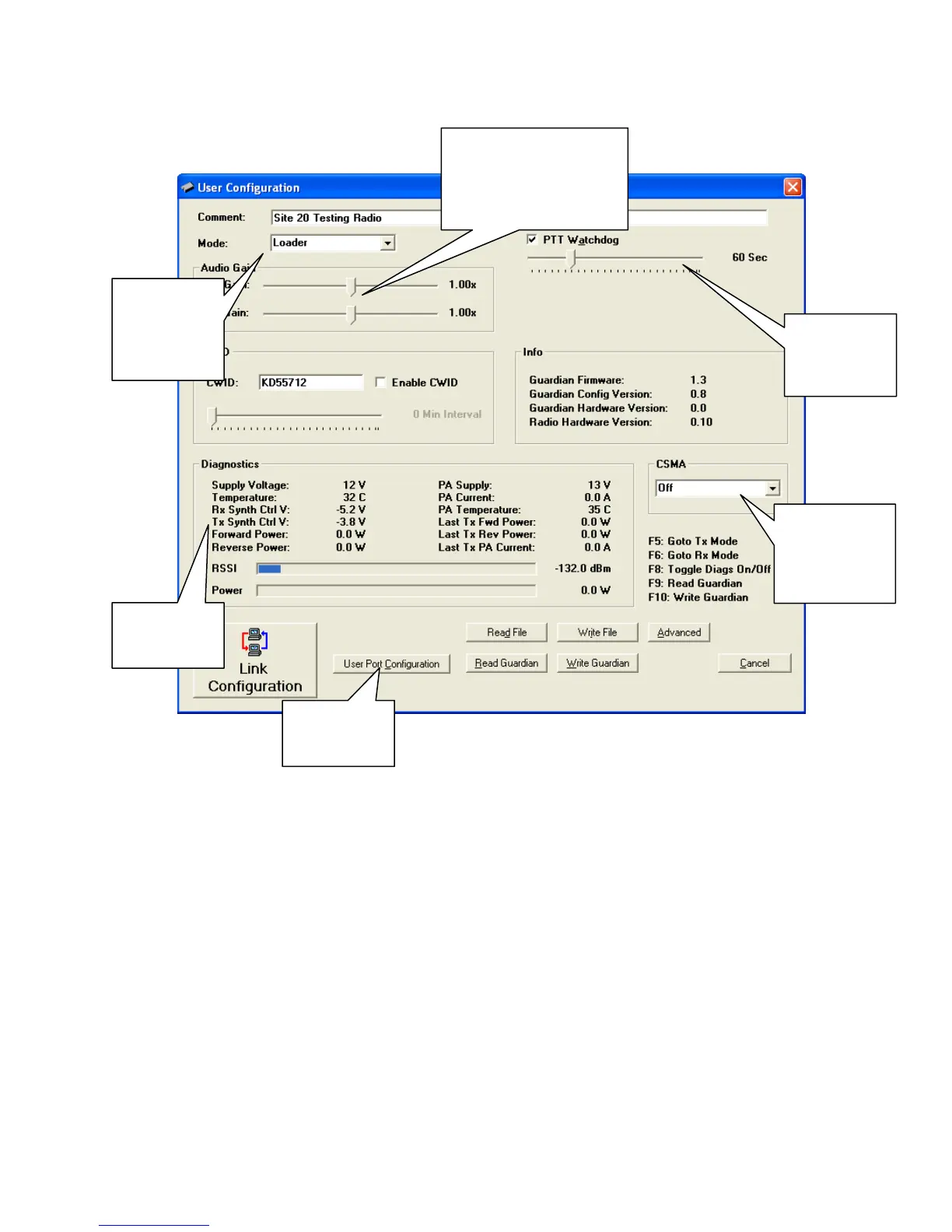 The Guardian FPS will read the current configuration of the Guardian that is connected to the computer and display its