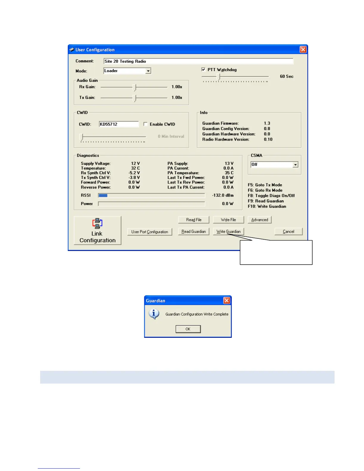 Programming of the Guardian is very fast. The message “Guardian Configuration Write Complete” appears. Click OK.