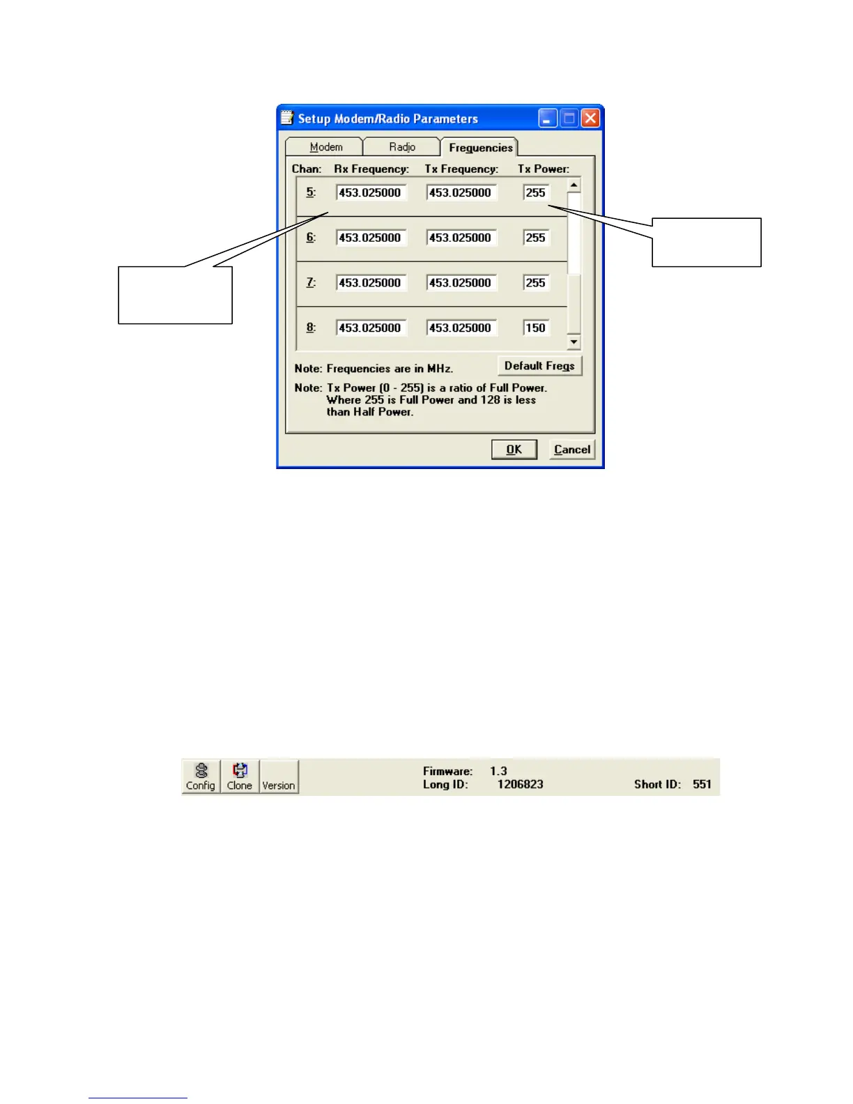 Figure 62 T-96SR Setup Parameters – Frequencies