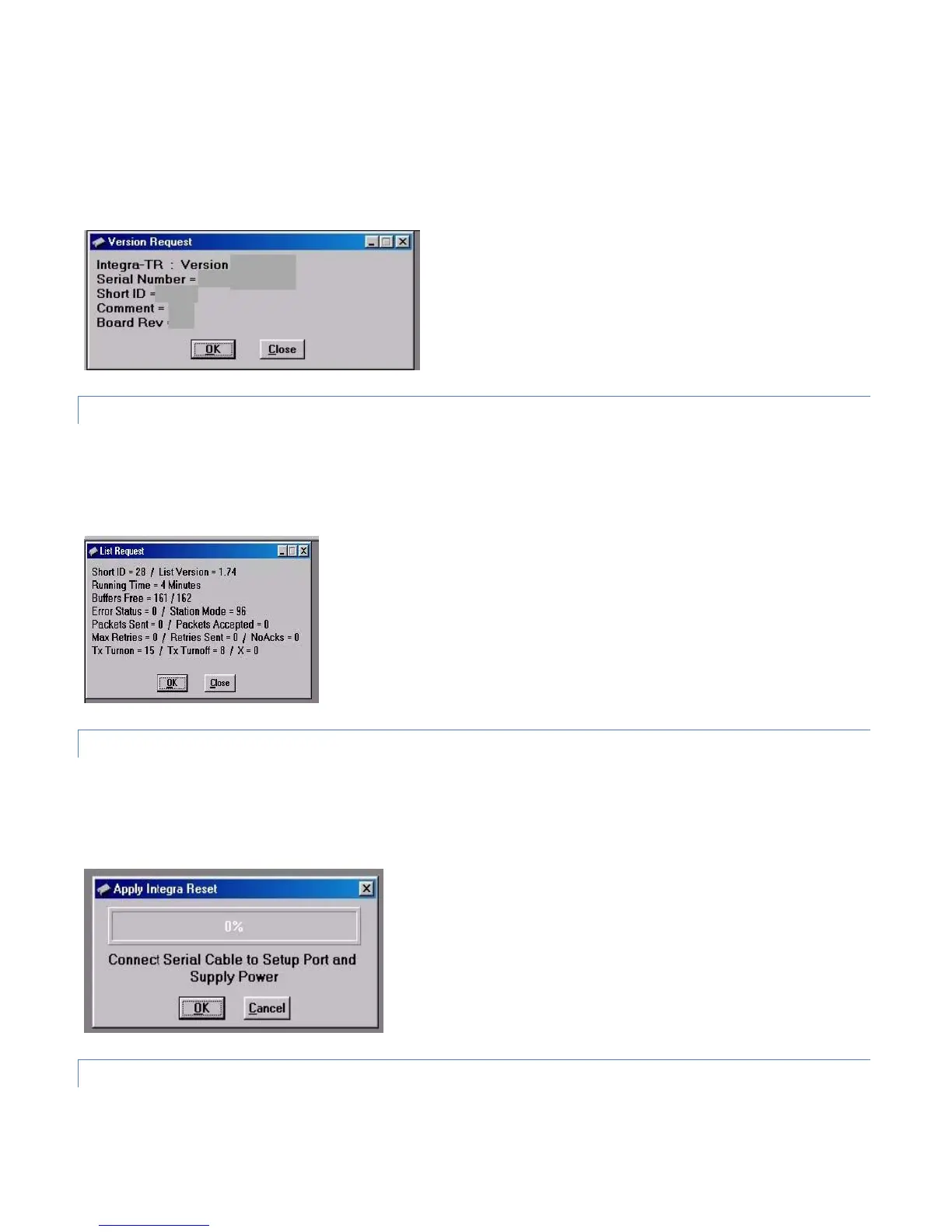The Select Version Reset utility is accessed from the Edit pull-down menu. Selecting Version Request causes the Integra-TR