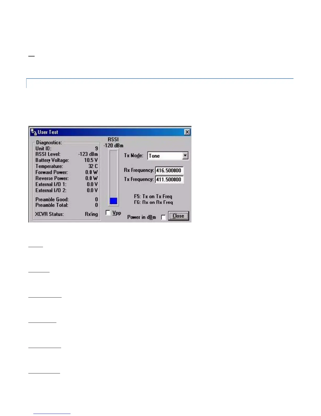 A User Test’s diagnostic parameters include: