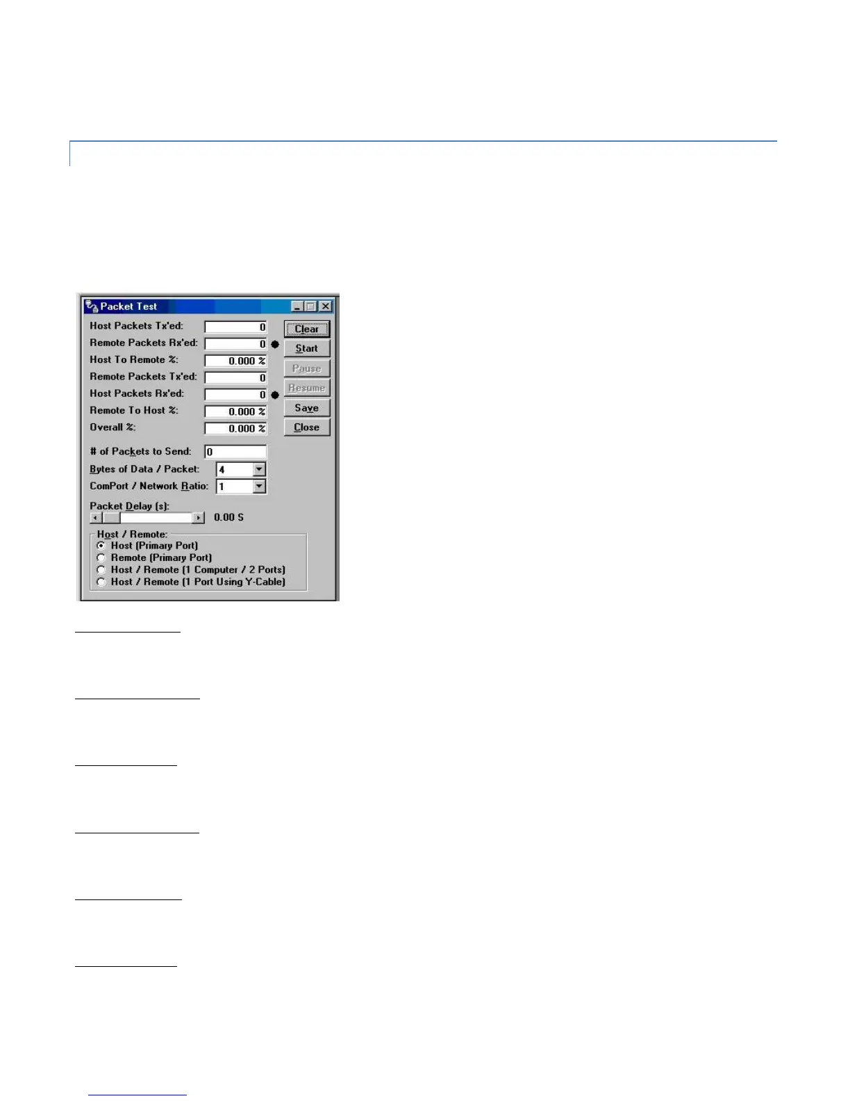 The Packet Test allows the user to simulate a Host/Remote polling environment. The Host will send out a packet to the