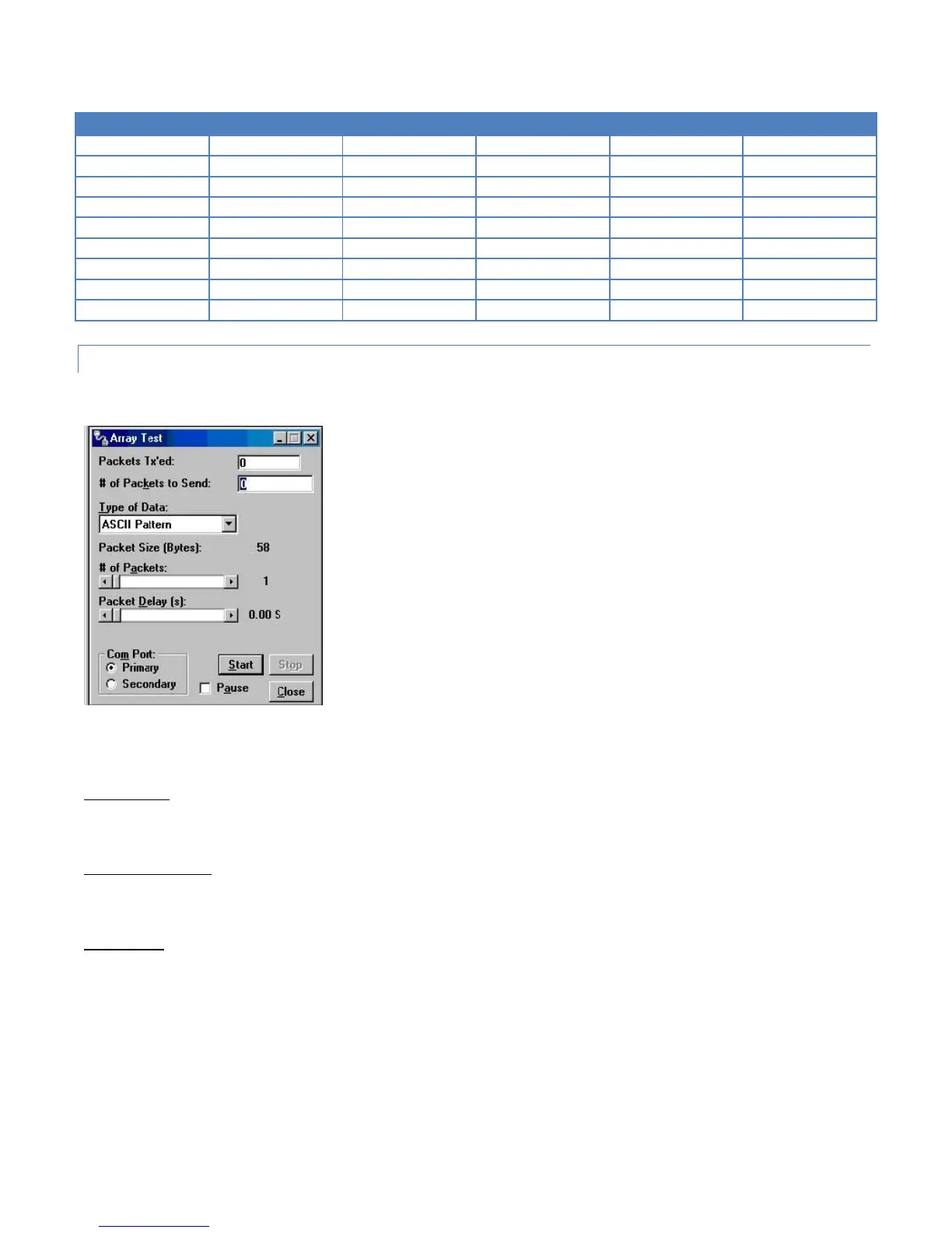 The Array Test utility is used to send programmable length test packets. The packets are built using one of four possible