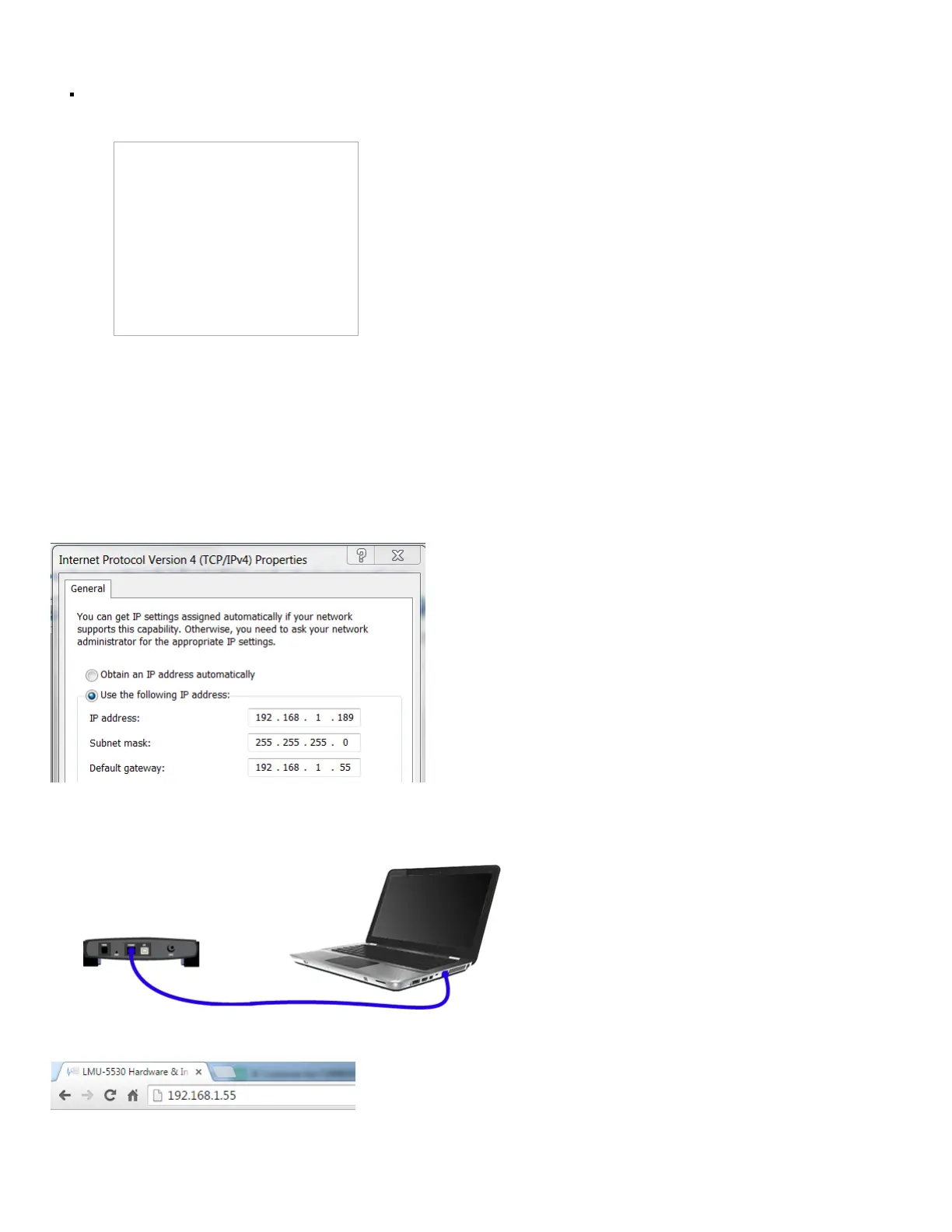 Change the IP settings on the maintenance computer to match the subnet of the LMU-LMU5541™