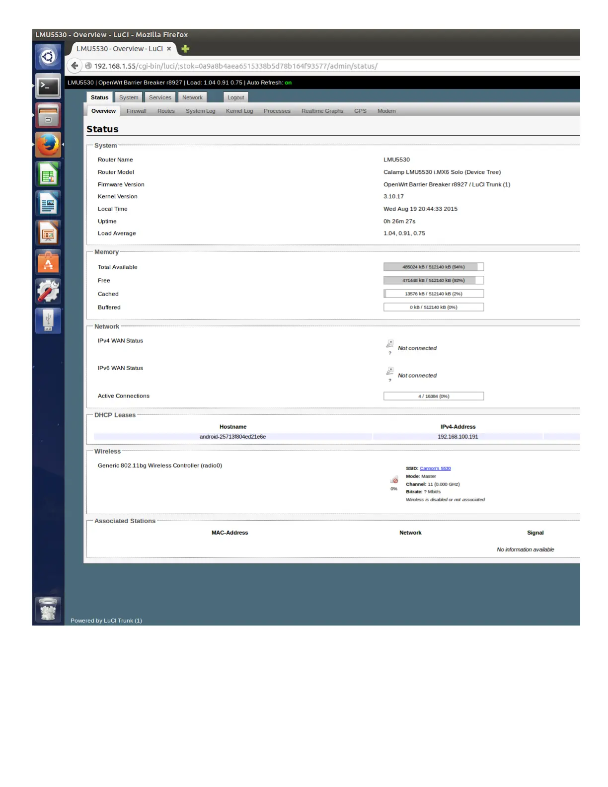 Note: By default the WIFI interface is configured in Access Point mode with no security.