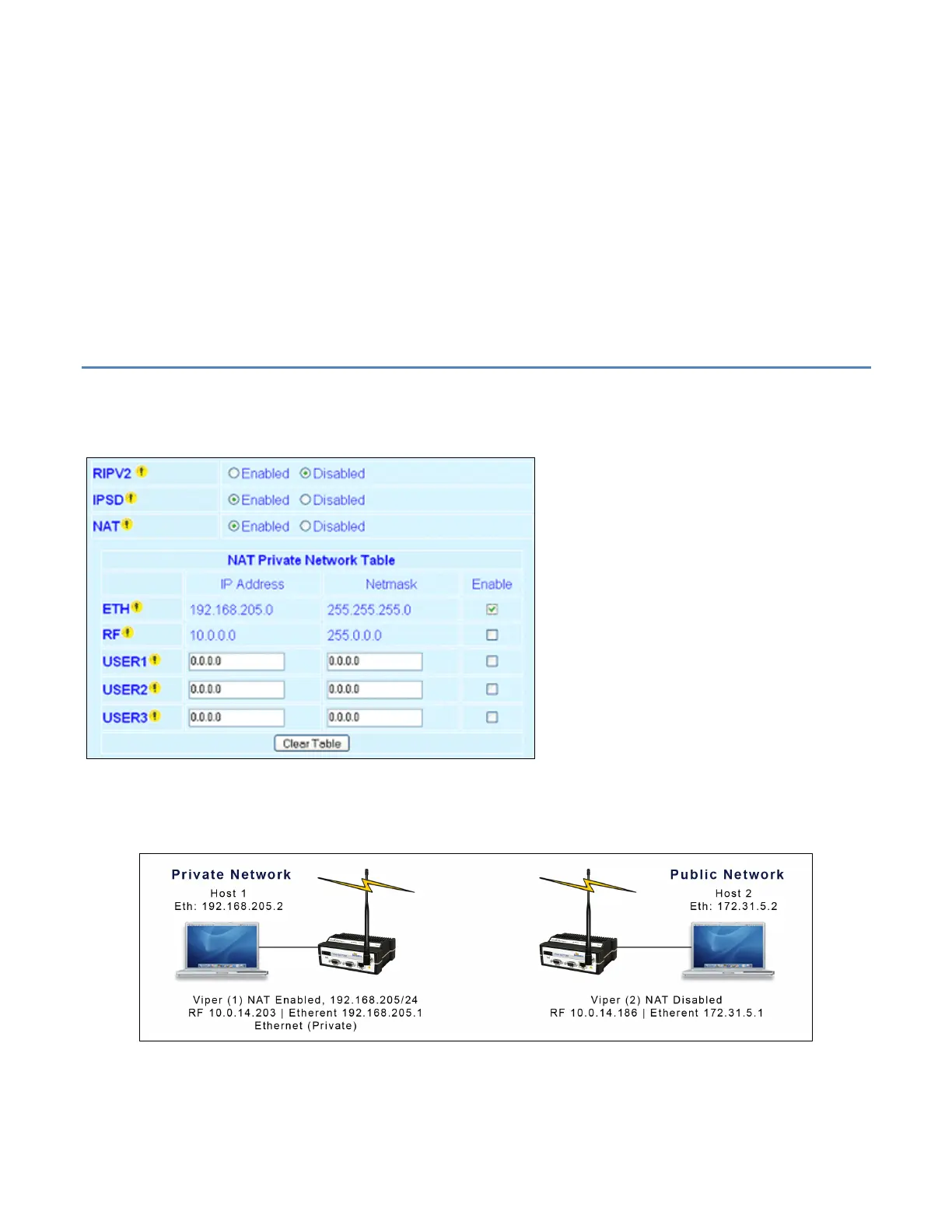 The user can select which of two interfaces (Ethernet or RF) will be considered private. The following examples illustrate