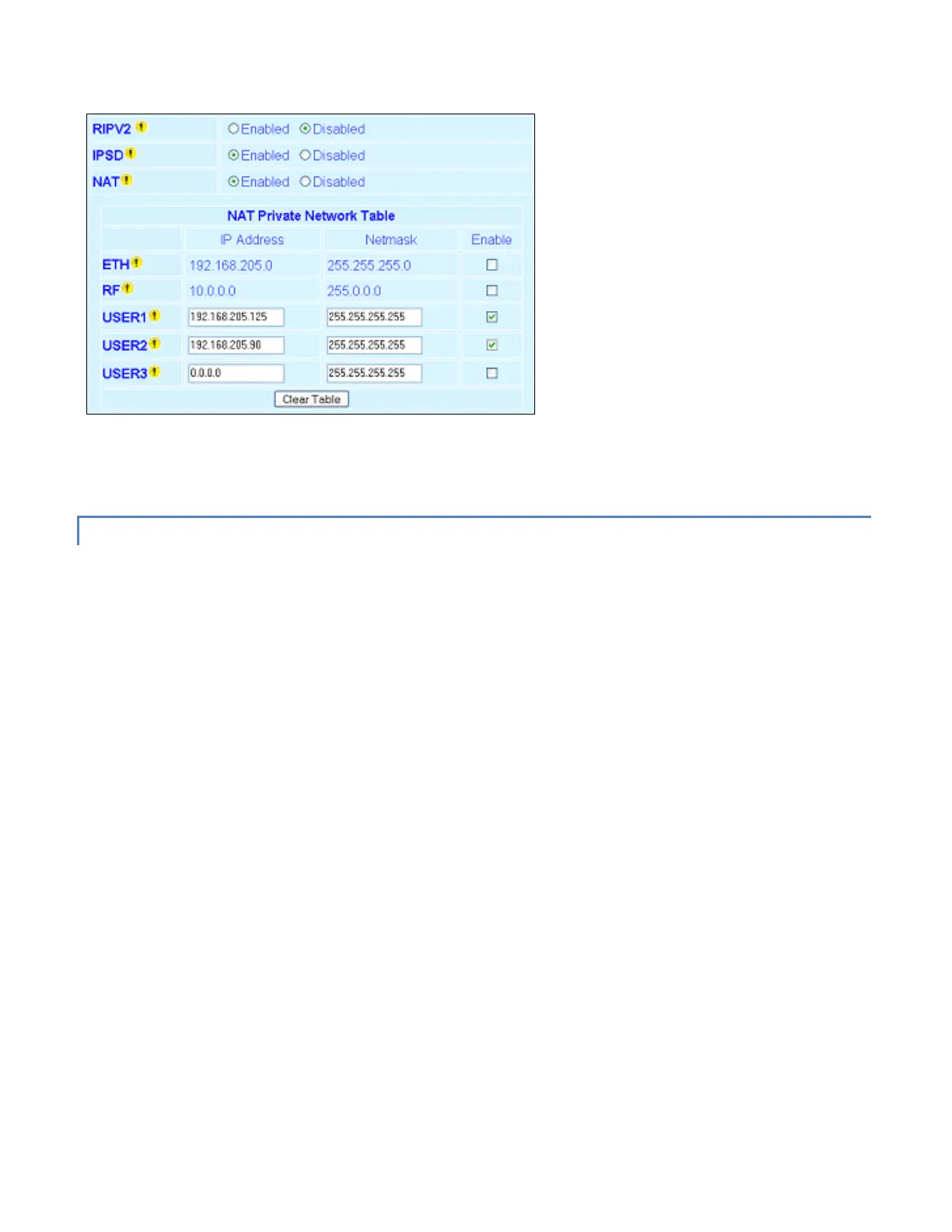 Figure 40 shows the NAT Eth IP subnet 192.168.205.0 will be hidden from the Public Network. Any TCP packets sent to the
