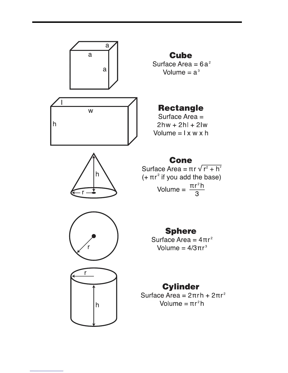 SURFACE AREA/VOLUME FORMULAS