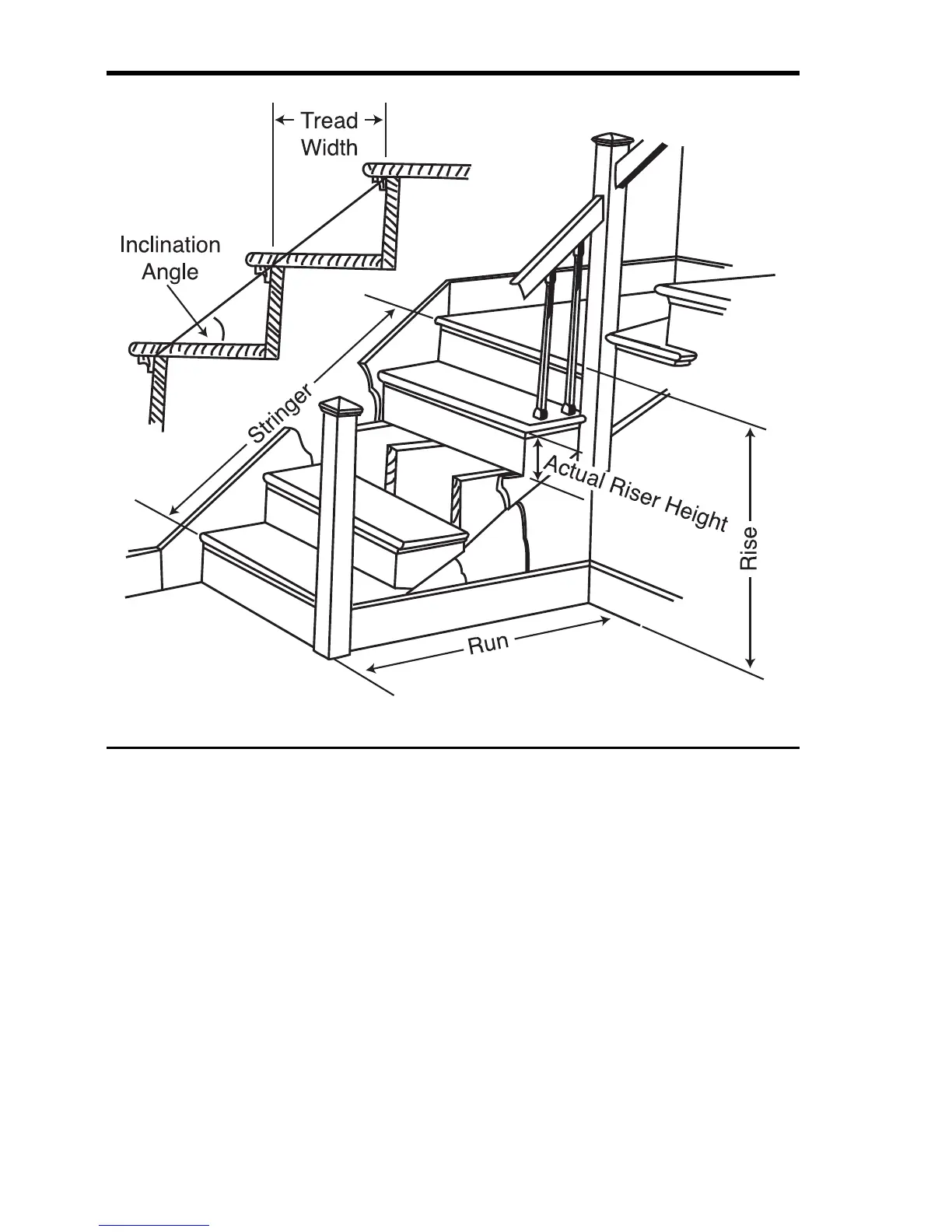 Rise: The “floor-to-floor” or “landing-to-landing” rise is the actual ver-