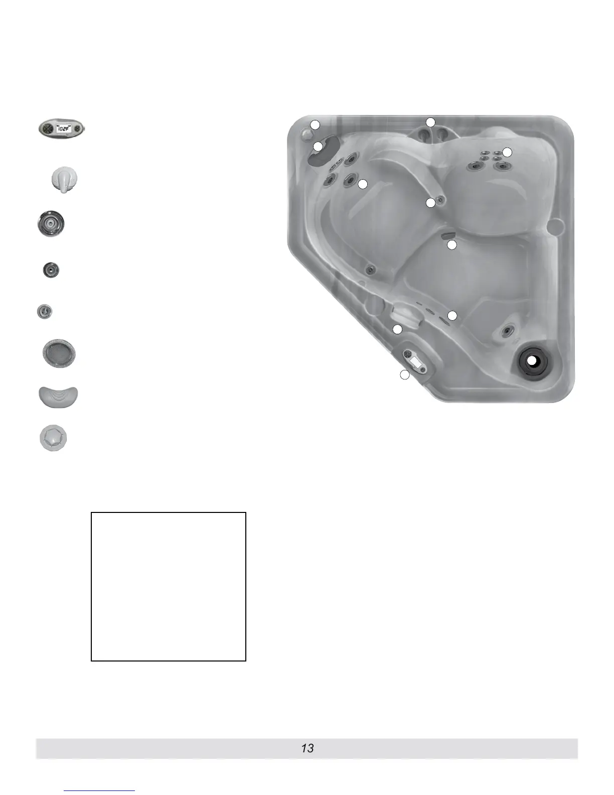 9) Spa Filter provides the water filtration of the spa.