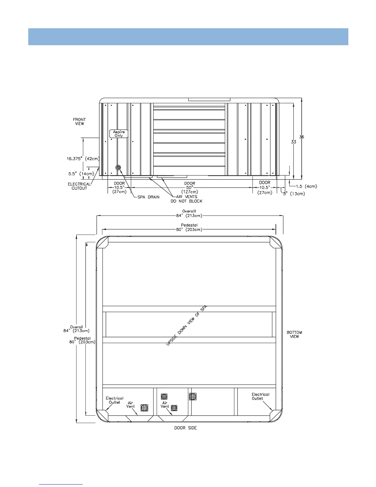 NOTE: Watkins Manufacturing Corporation recommends that the Tahitian, Aspire, and Hawaiian be installed on a minimum 10.2 cm thick reinforced concrete pad or