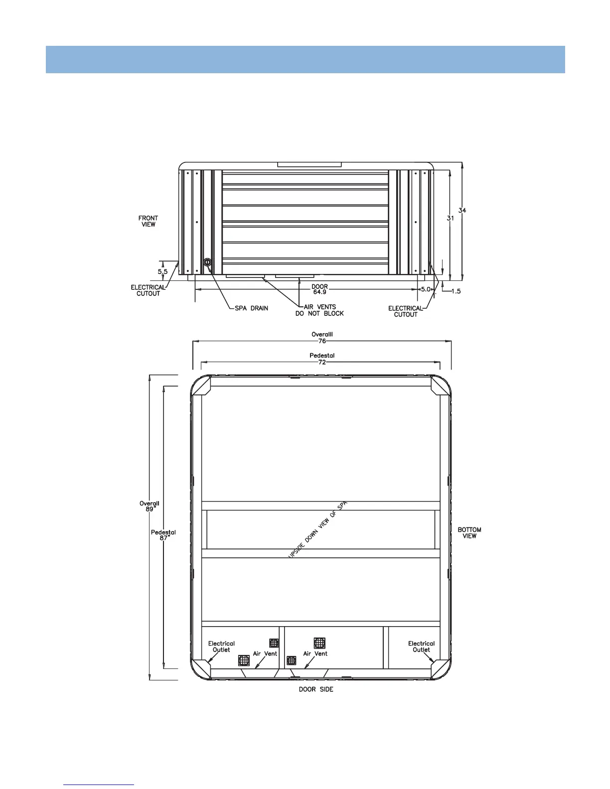 NOTE: All dimensions are approximate; measure your spa before making critical design or pathway decisions.