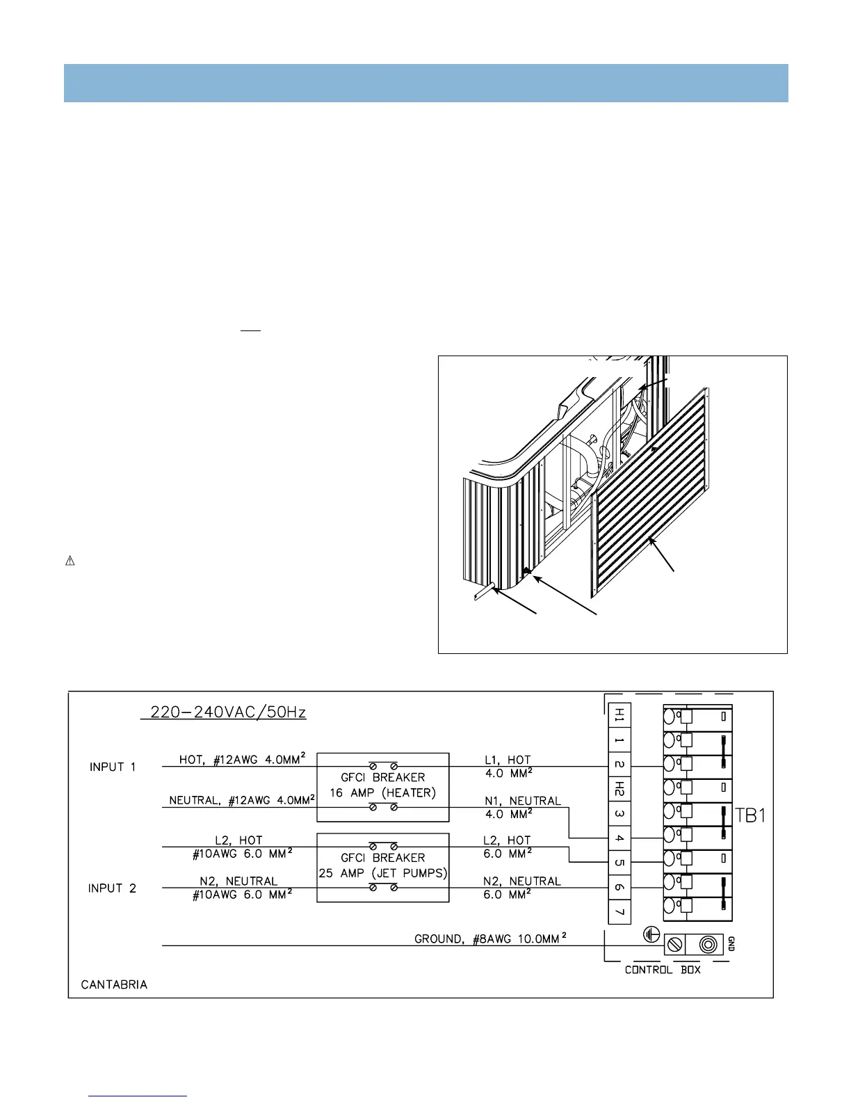 additional 16 amp breaker, the heater will NOT operate while the jets in the lounge (jet pump 3) are on.