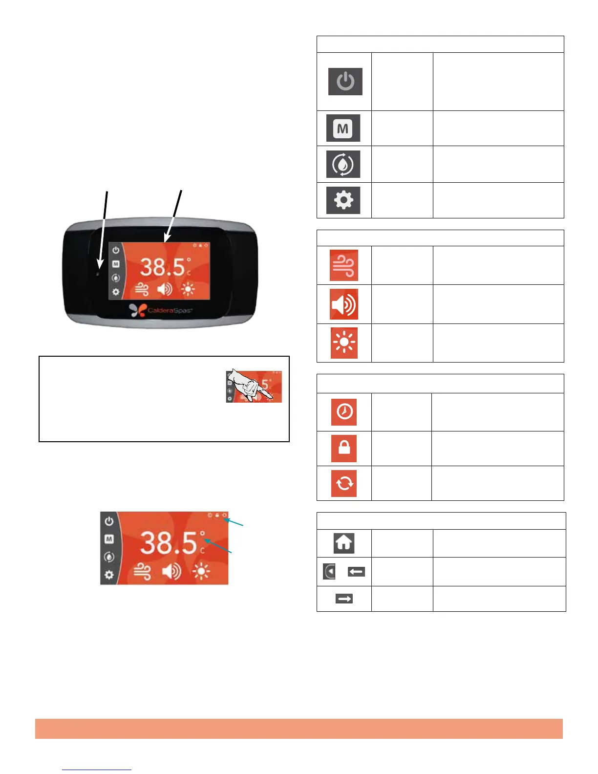 provides a quick visual check of the spa’s status and allows the user to