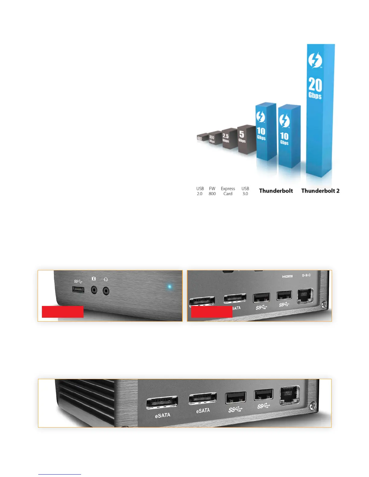 Featuring dual 6G eSATA ports, the Thunderbolt™ Station 2 allows users to connect professional
