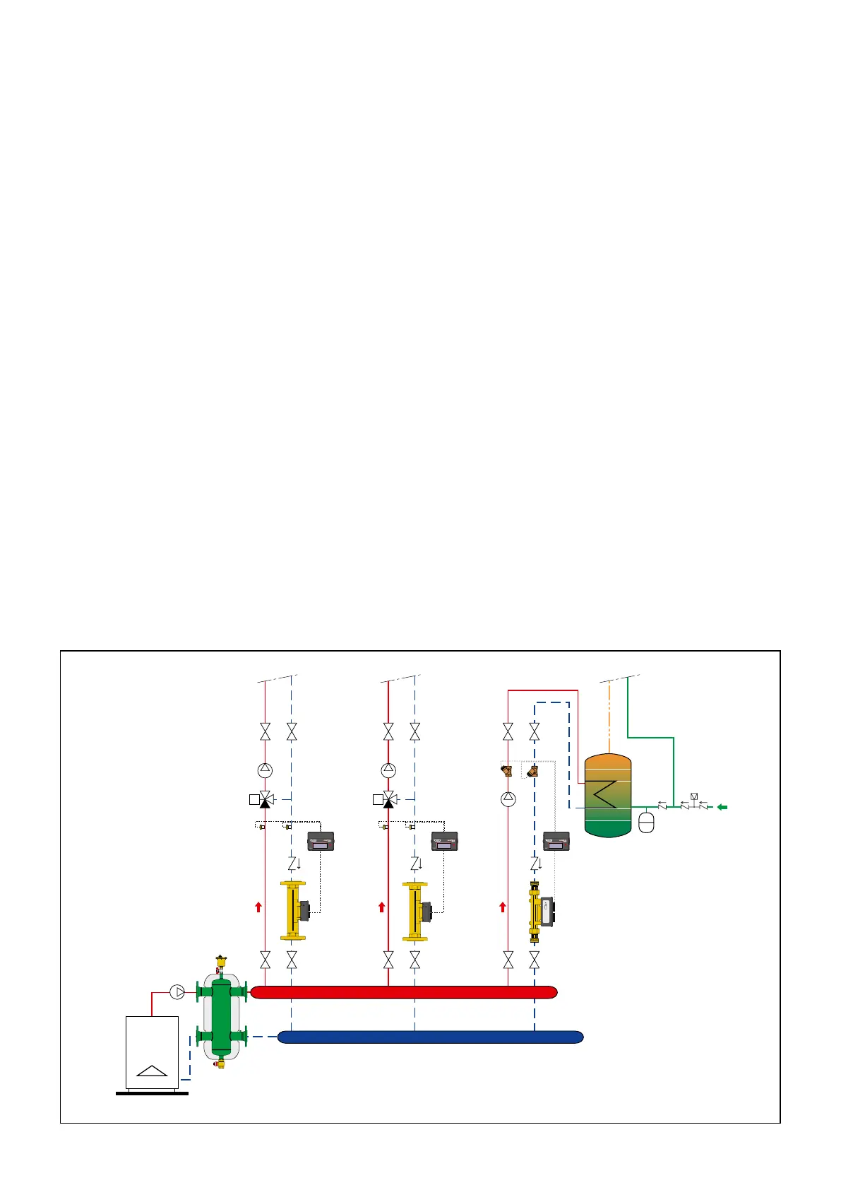 The temperature probes (by means of the pocket or sleeve according to the DN) must be positioned on the corresponding ow/return pipes. The