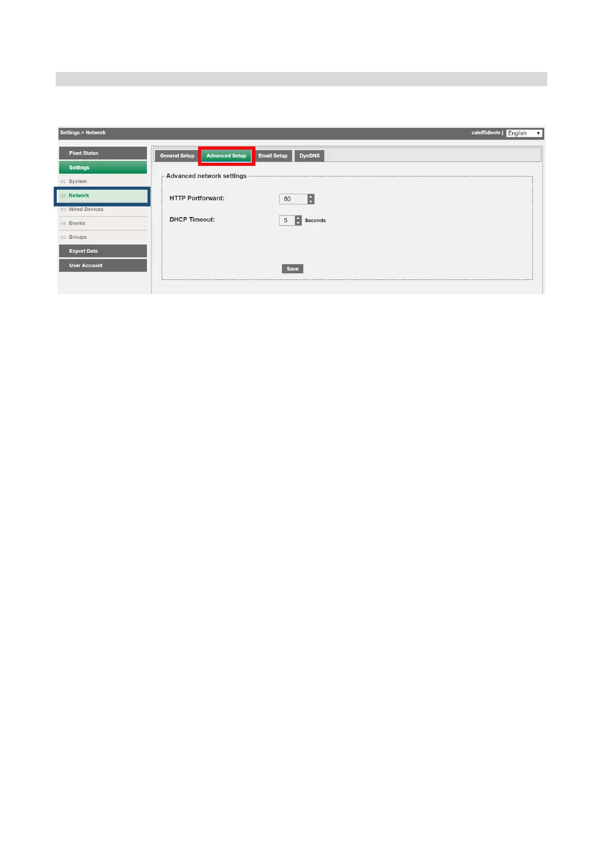 CALEFFI DATA EASY - Settings > Network > Advanced