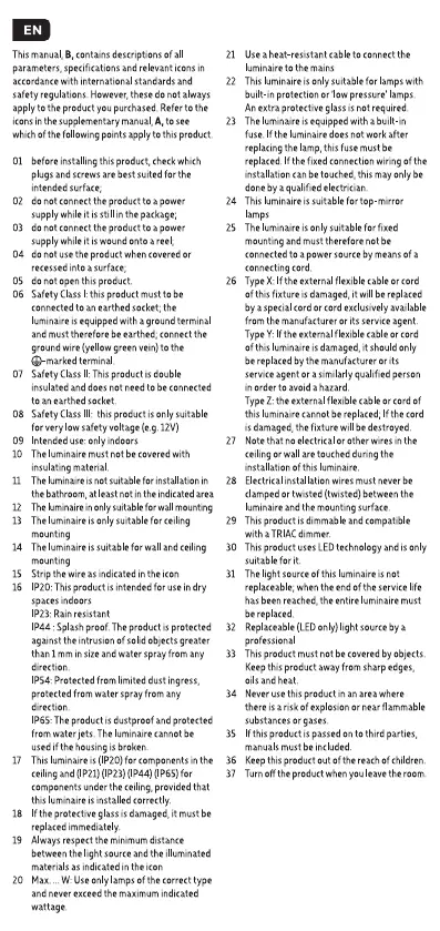 Calex SMART OUTDOOR - Product Specifications and Safety (Manual B); General Safety and Usage Precautions; Mounting, Wiring, and Electrical Safety; IP Ratings and Product Compatibility