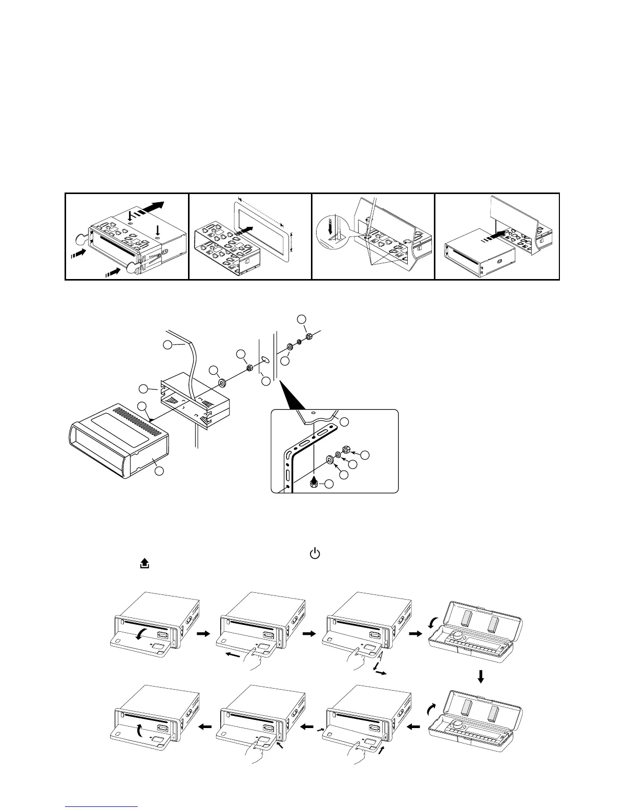 • Be sure to remove the front panel before installing the unit.