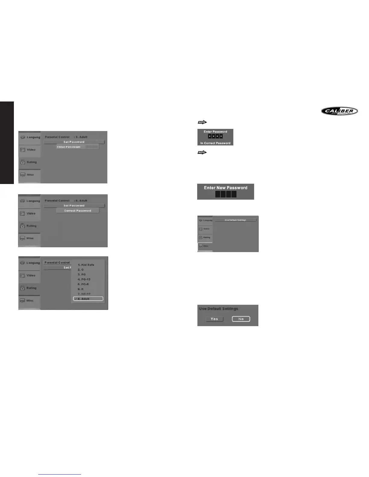 Parental control does not work for VCD/SVCD/CVD or CD audio.