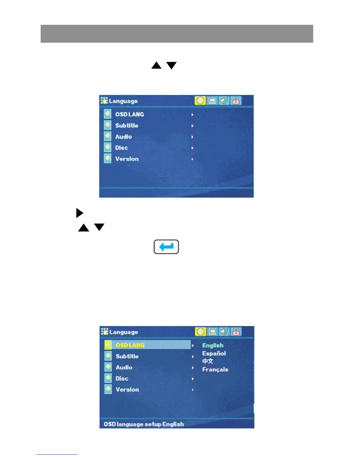 preferred language for the OSD menu and messages. The