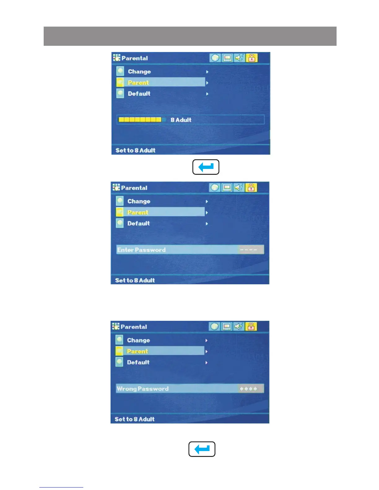 Press the OK or touch screen to enter the password." "