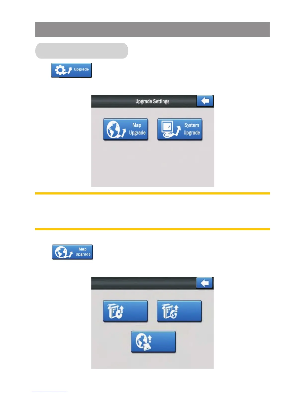 Tap button on the upgrade settings screen to access