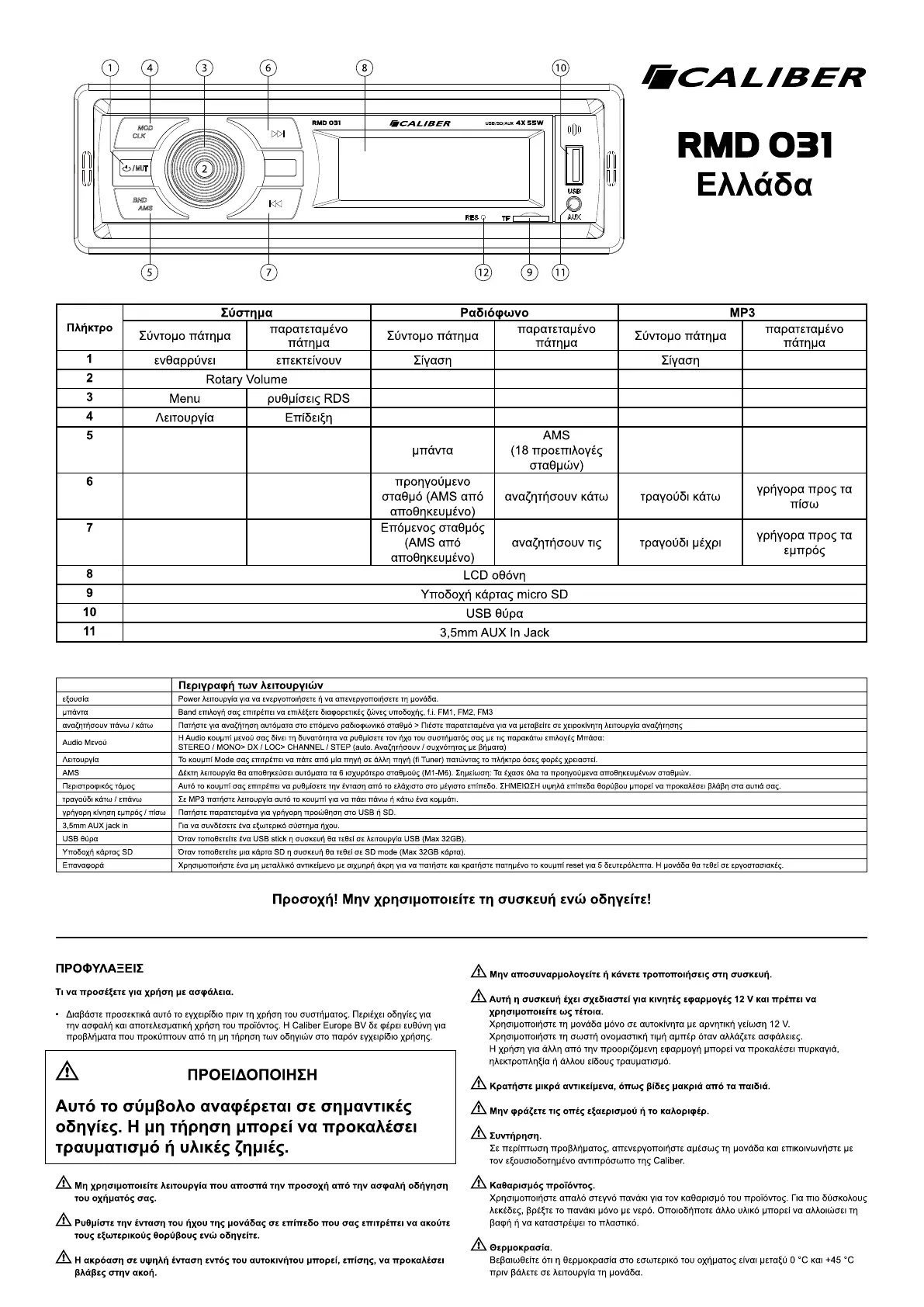 Υποδοχή κάρτας SD Όταν τοποθετείτε μια κάρτα SD η συσκευή θα τεθεί σε SD mode (Max 32GB κάρτα).