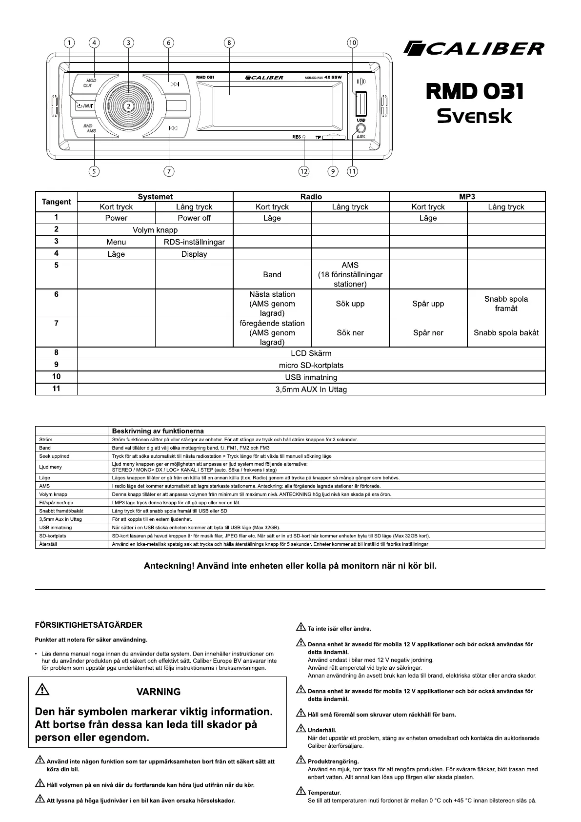 Läge Läges knappen tillåter er gå från en källa till en annan källa (t.ex. Radio) genom att trycka på knappen så många gånger som behövs.