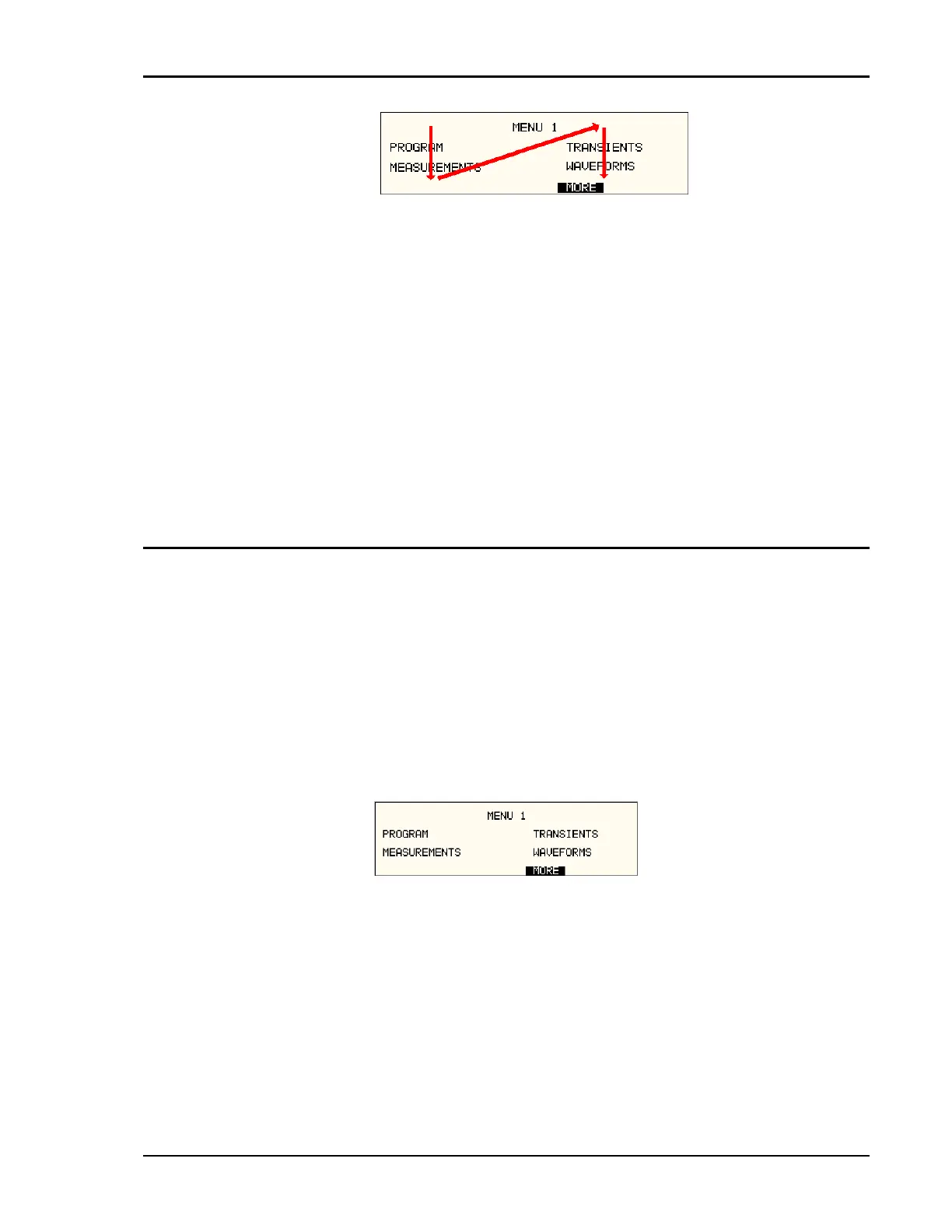 choices at the same level that did not fit on a single screen. Thus, to access MENU 2, the cursor should be