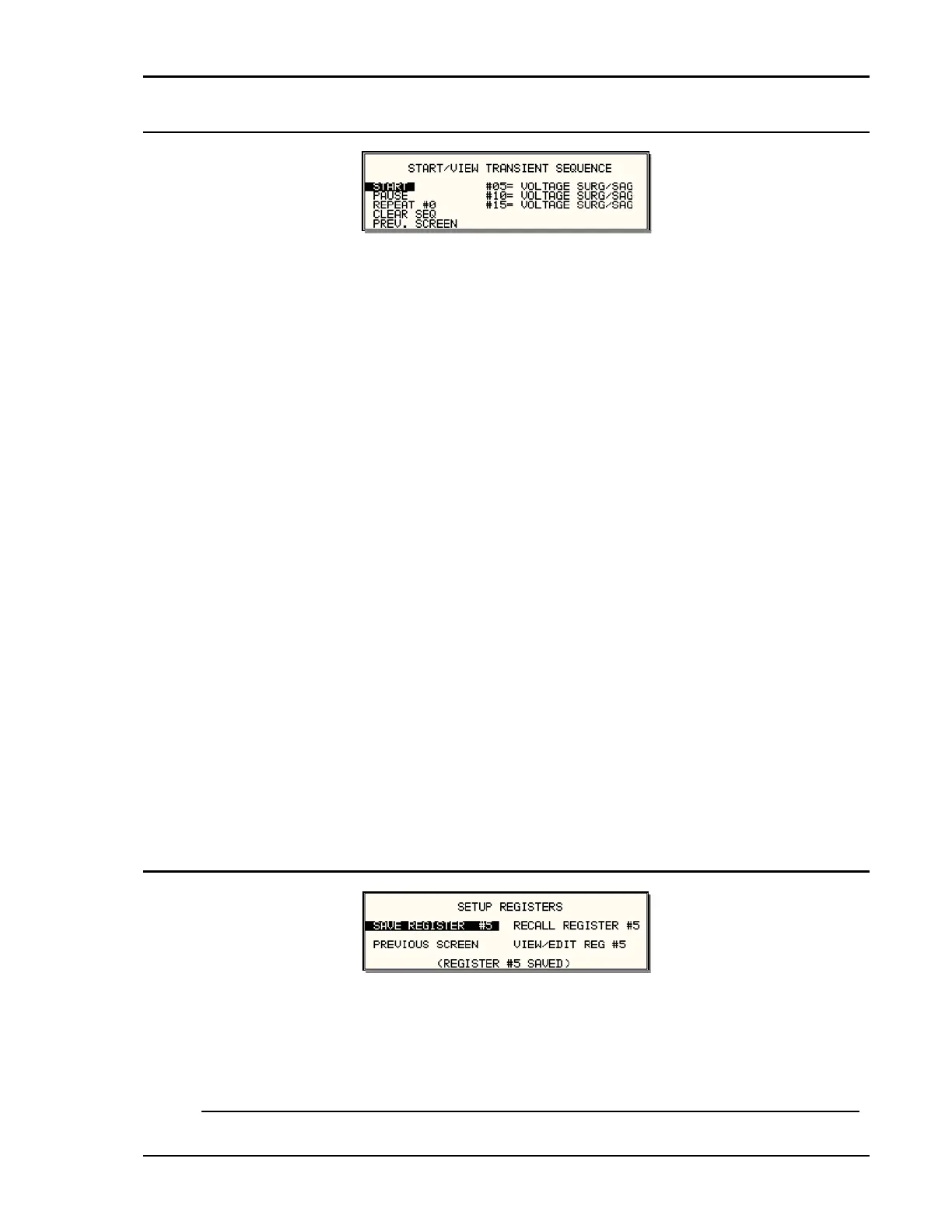 5.2.6.5 START/VIEW TRANSIENT SEQUENCE sub menu