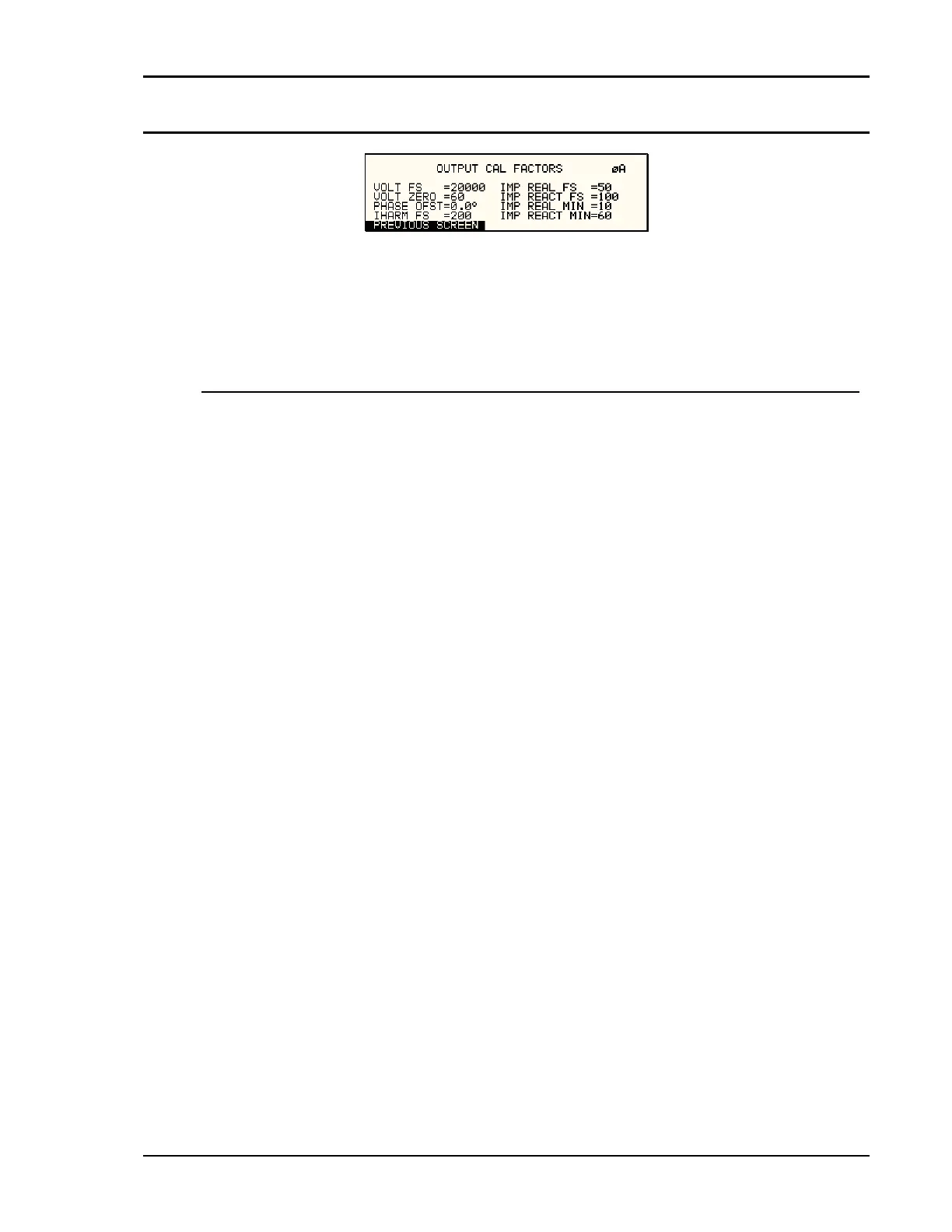 The OUTPUT CAL FACTORS menu provides access to the output calibration parameters. These