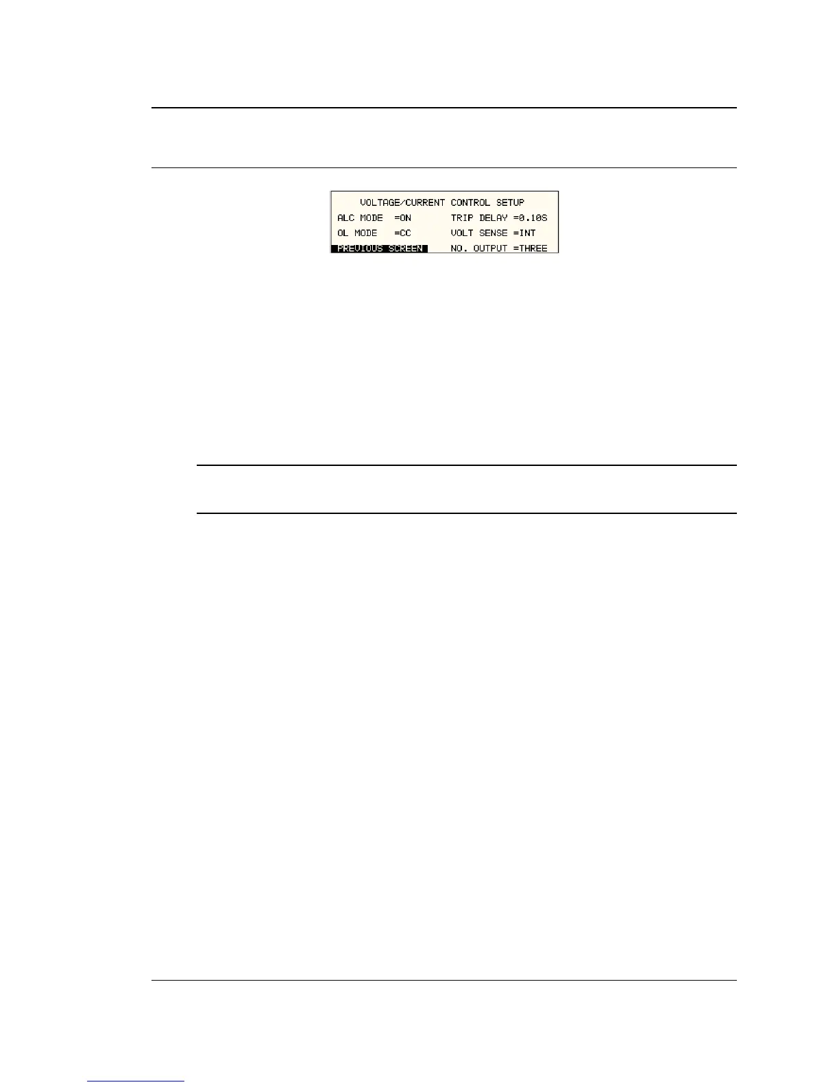 The VOLTAGE/CURRENT CONTROL SETUP menu may be used to set output voltage and