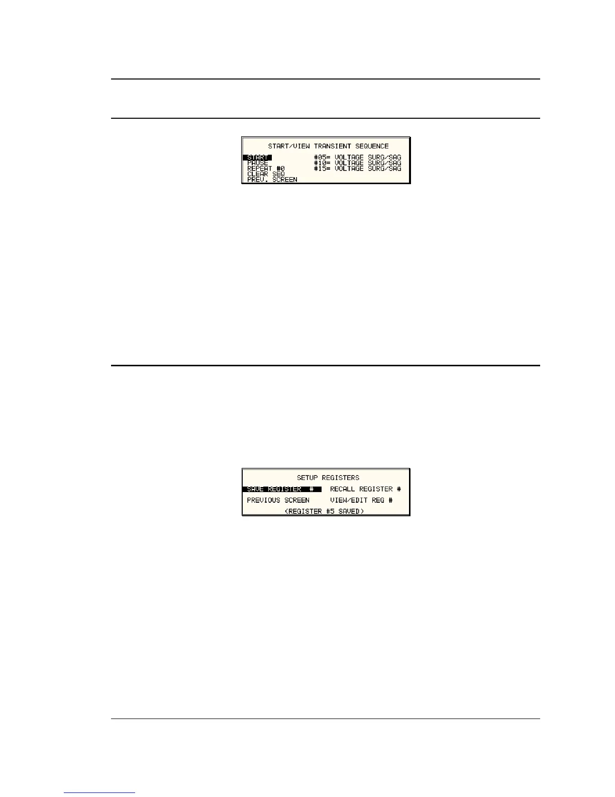 Figure 4-45: START/VIEW TRANSIENT SEQUENCE Menu
