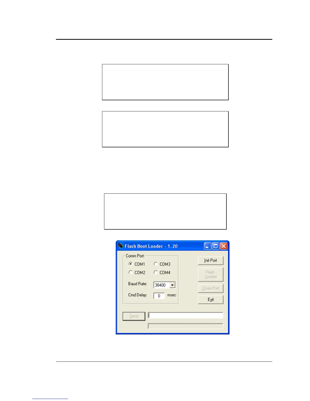 below appears. This screen shows the RS232 setup parameters that are used in the boot loader