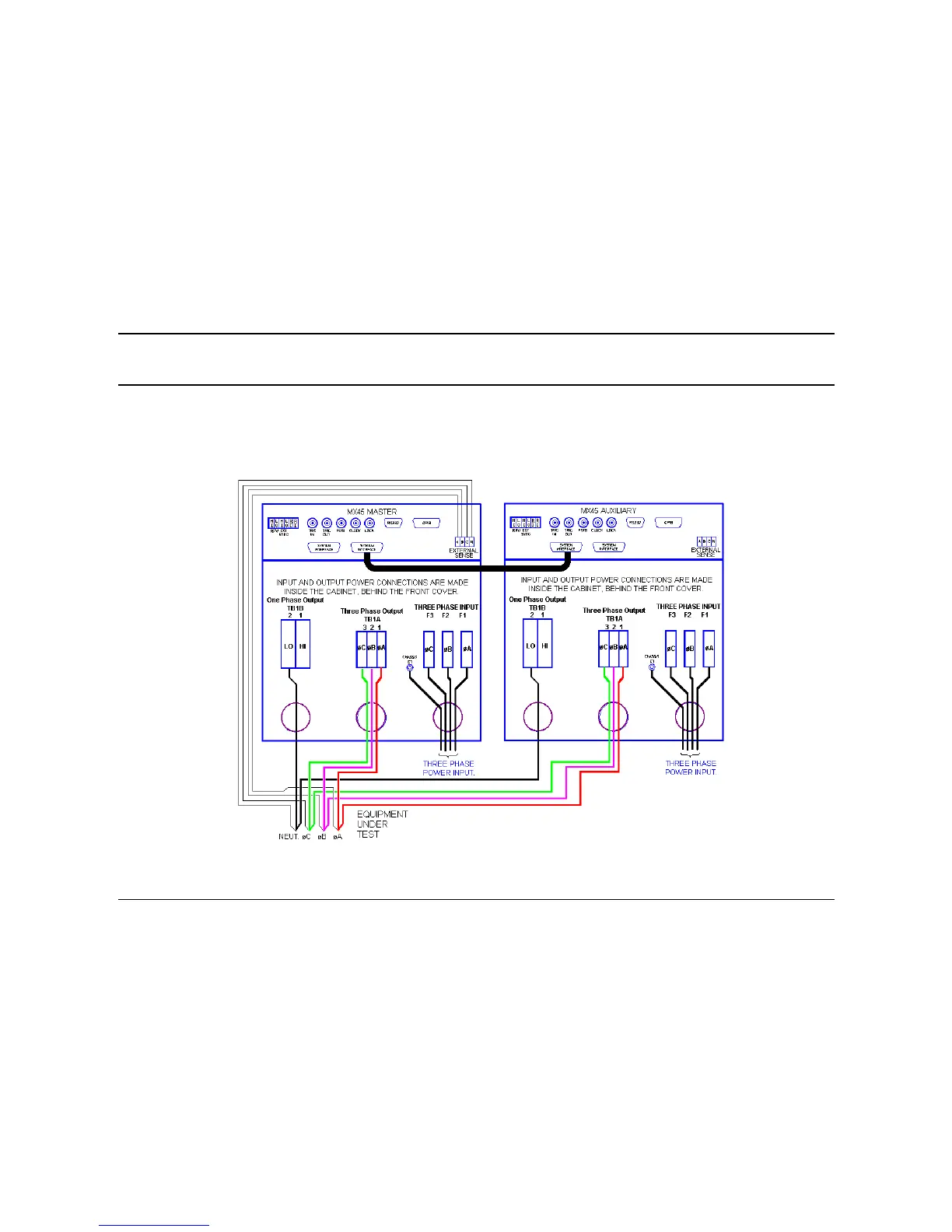 Figure 3-9 shows the required output connections for a MX60-3 or MX90-3 three phase output configuration (rear-view perspective).