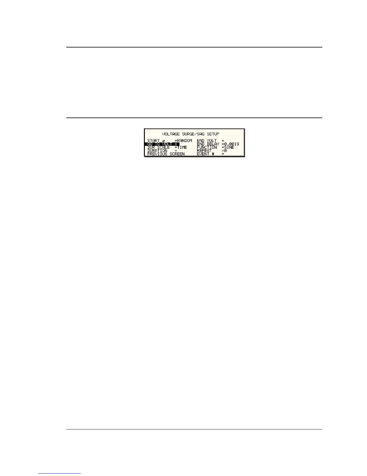 2. Press the ENTER key to bring up the VOLT SURGE/SAG screen.