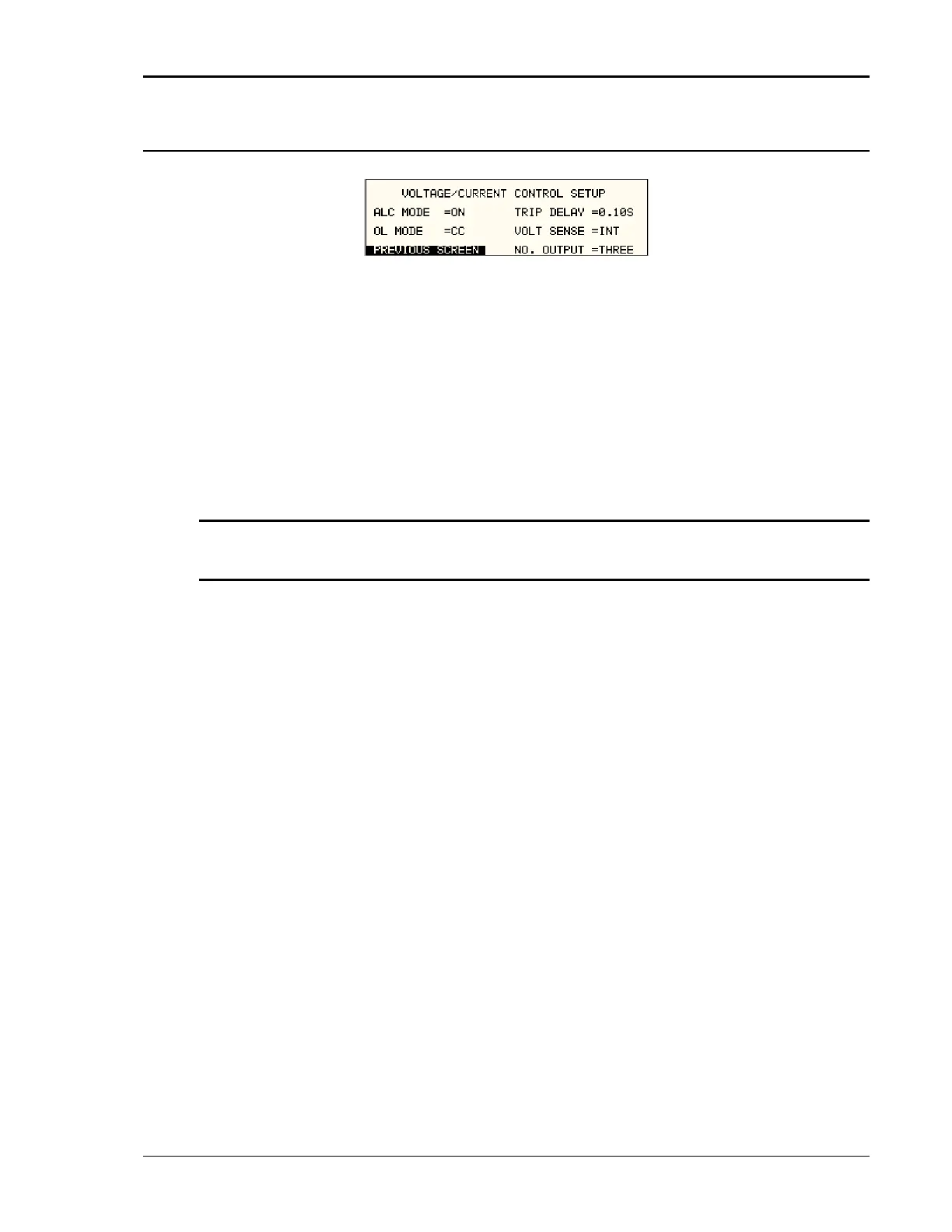 The VOLTAGE/CURRENT CONTROL SETUP menu may be used to set output voltage and