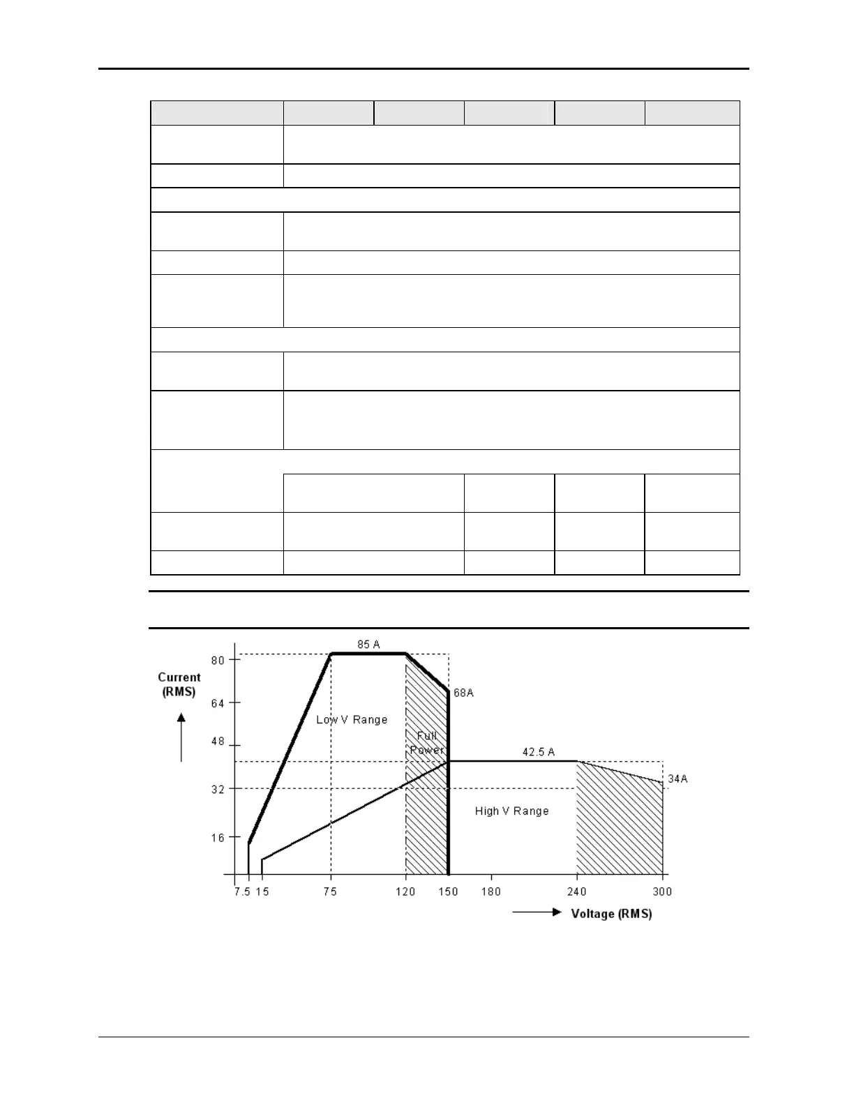 Note: Output specifications apply below the Current / Voltage rating lines shown in the