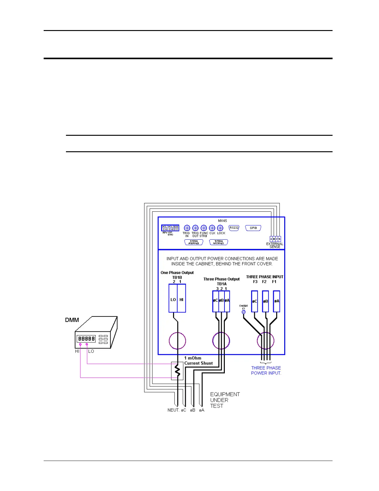 Connect the test equipment to the power source as shown in Figure 6-2. If the power system is