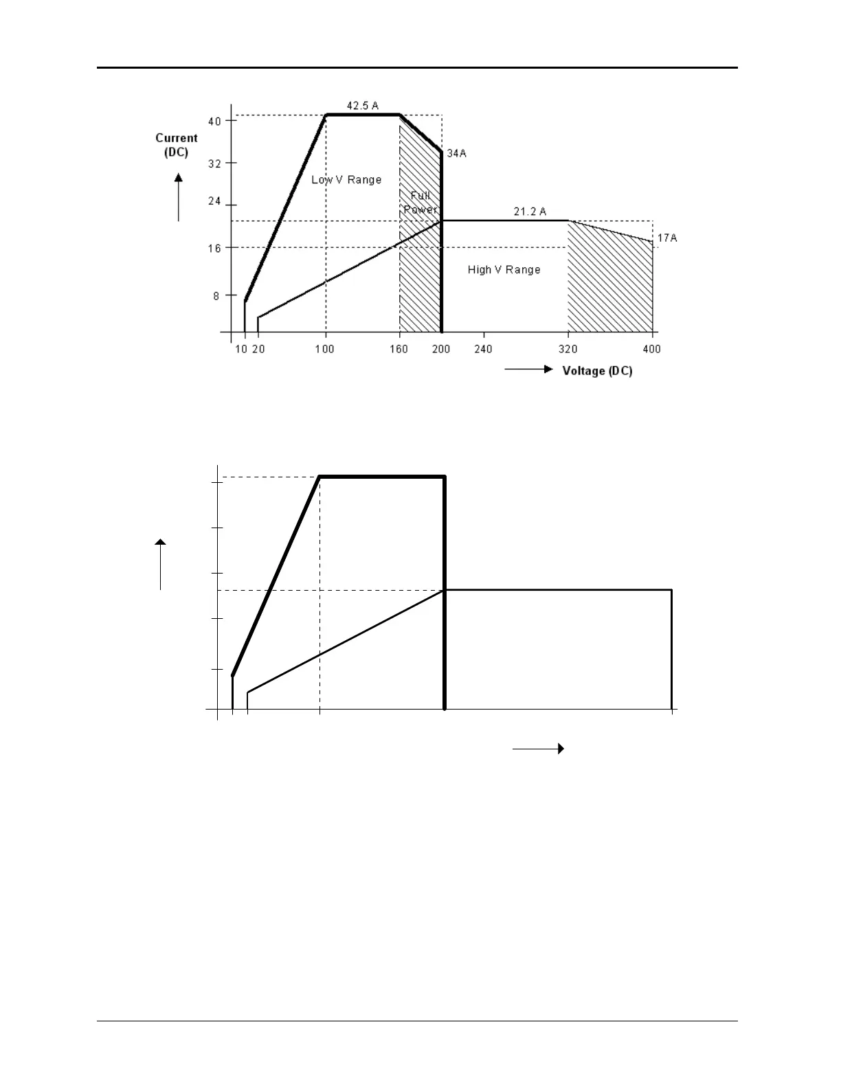 California Instruments MX30-1 - Figure 2-4: MX30-3 Voltage; Current Rating Chart for 200;400 V DC Ranges; Figure 2-5: MX45-3 Voltage; Current Rating Chart for 200;400 V DC Ranges - Max. Rating