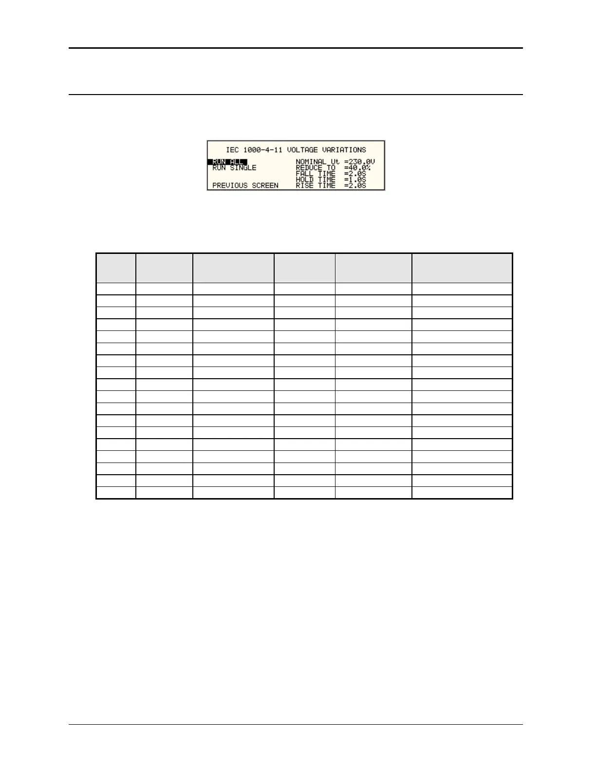 From the IEC1000-4-11 Main Menu screen shown in Figure 9-14, scroll to the VOLTAGE