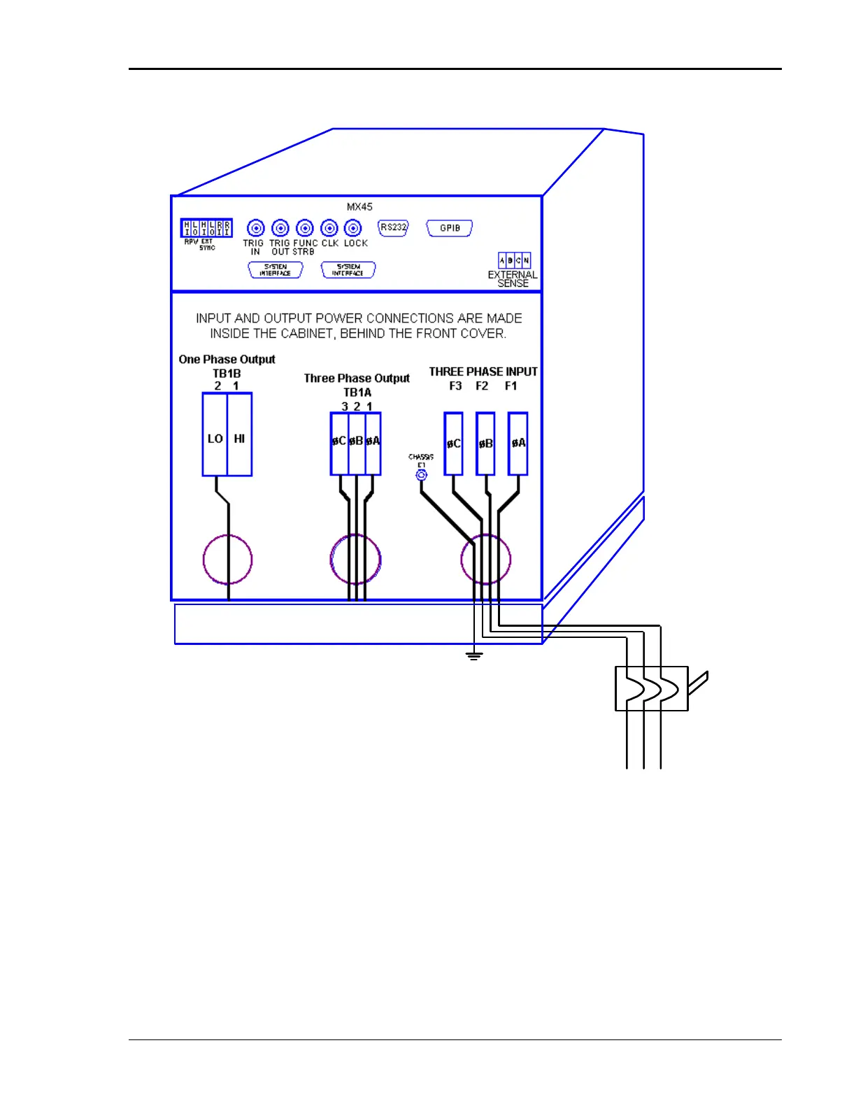 California Instruments MX30-1 - Figure 3-3: MX Series AC Input Connection Diagram (Rear View)