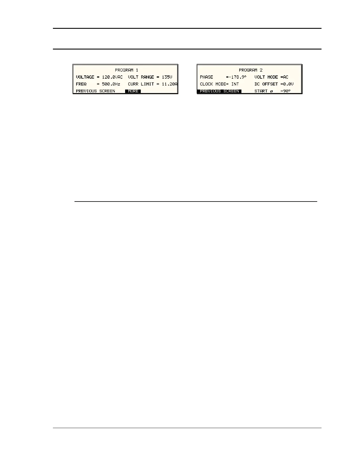 parameters are all located in PROGRAM 1. The PREVIOUS SCREEN entry, when selected, will