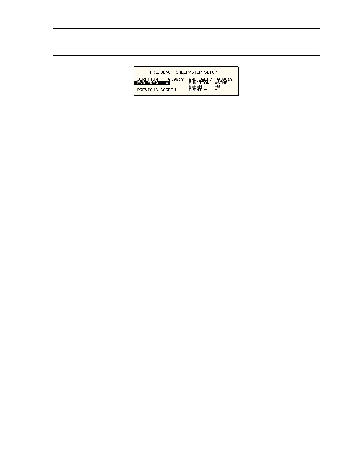 2. Press the ENTER key to bring up the FREQ SWEEP/STEP screen.