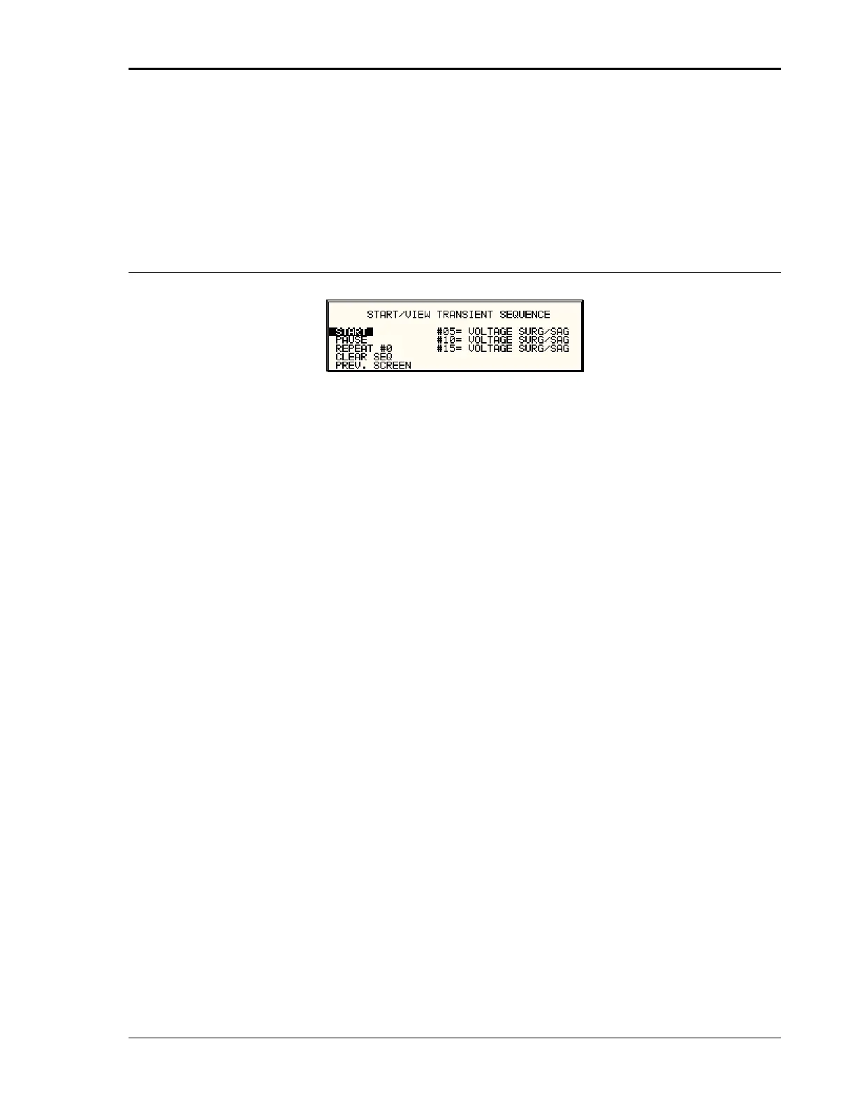 START/VIEW TRANSIENT SEQUENCE sub menu