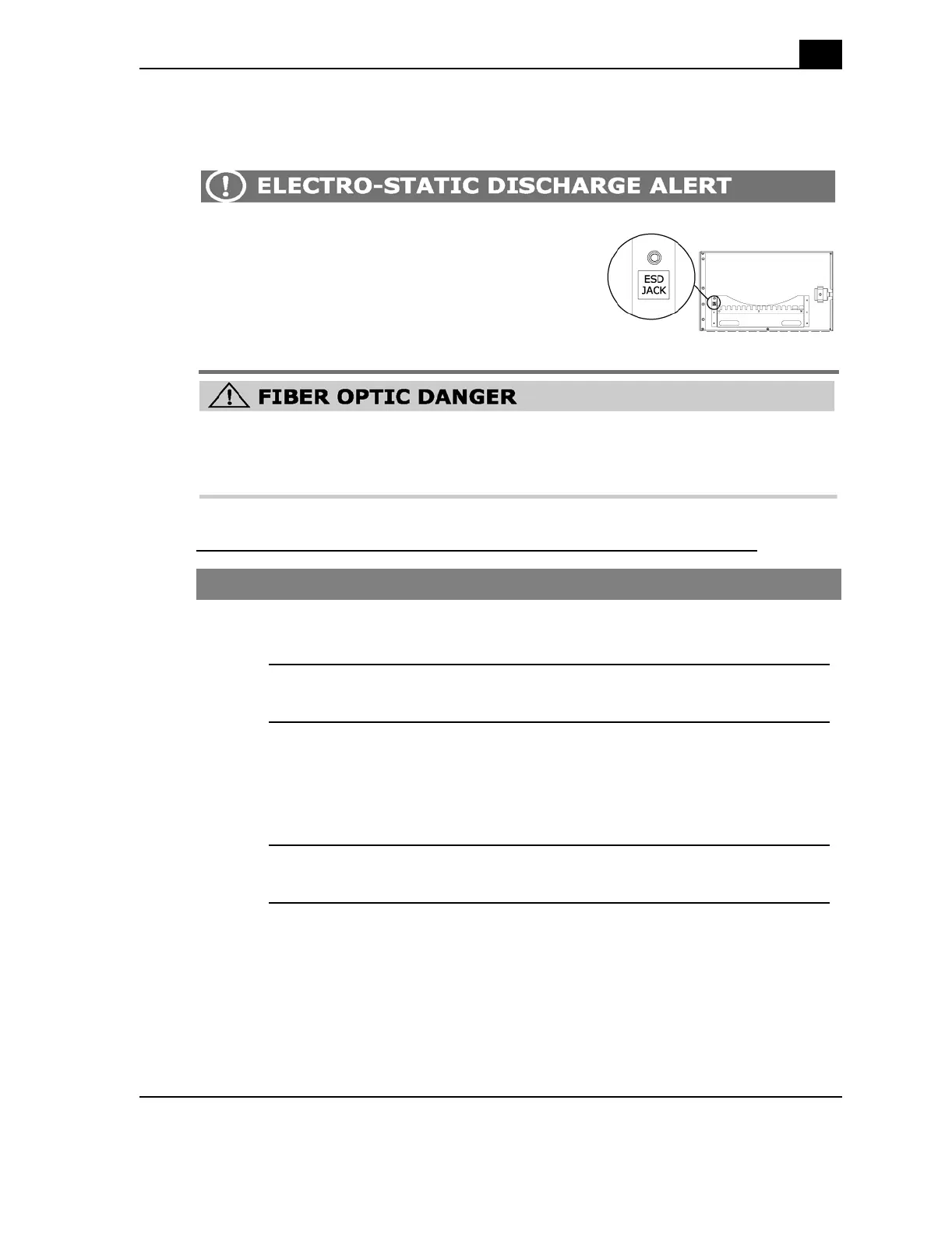 FIBER OPTIC DANGER! Never look into the end of a fiber optic cable! Light