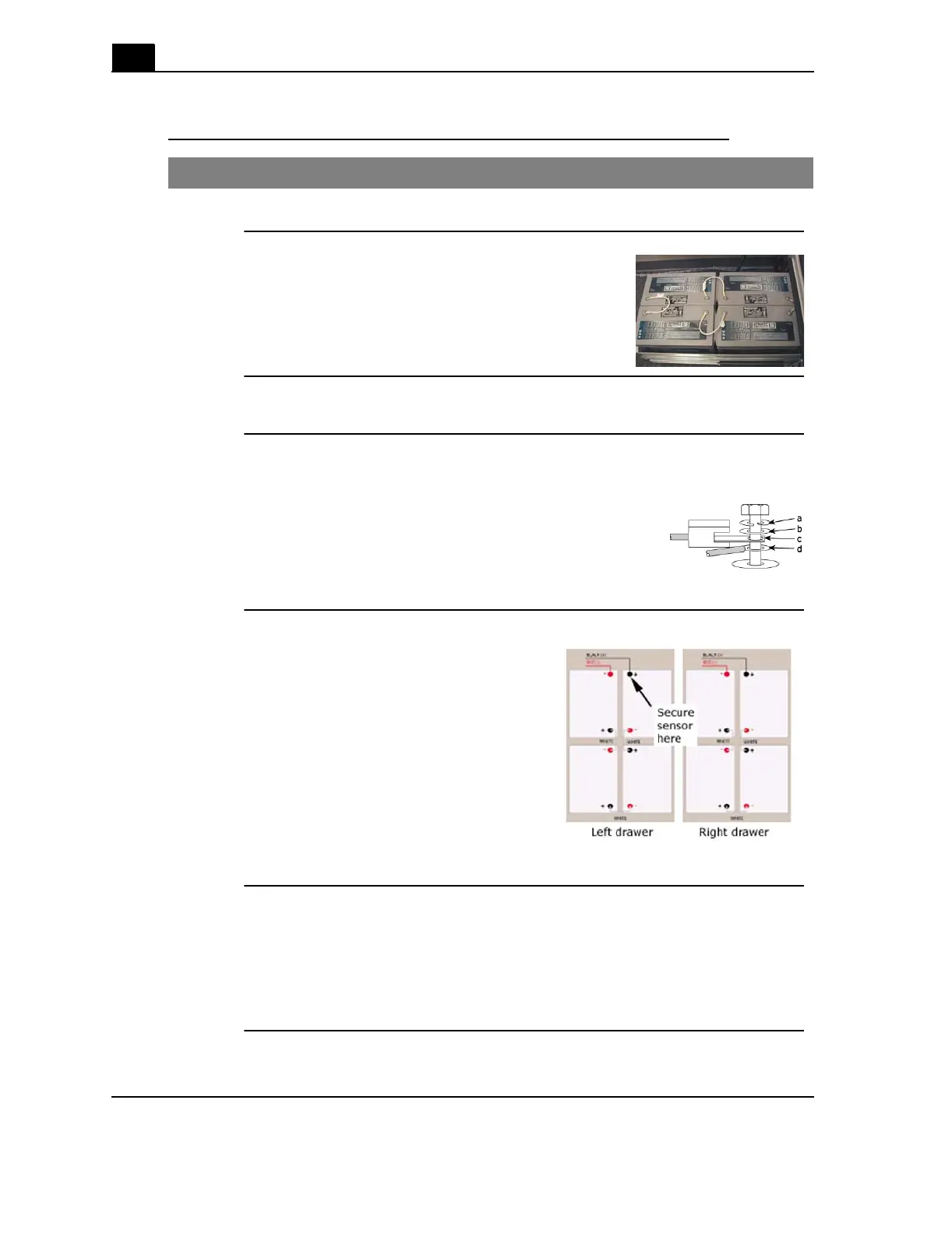 Locate the battery temperature sensors at the back of battery tray drawers 1