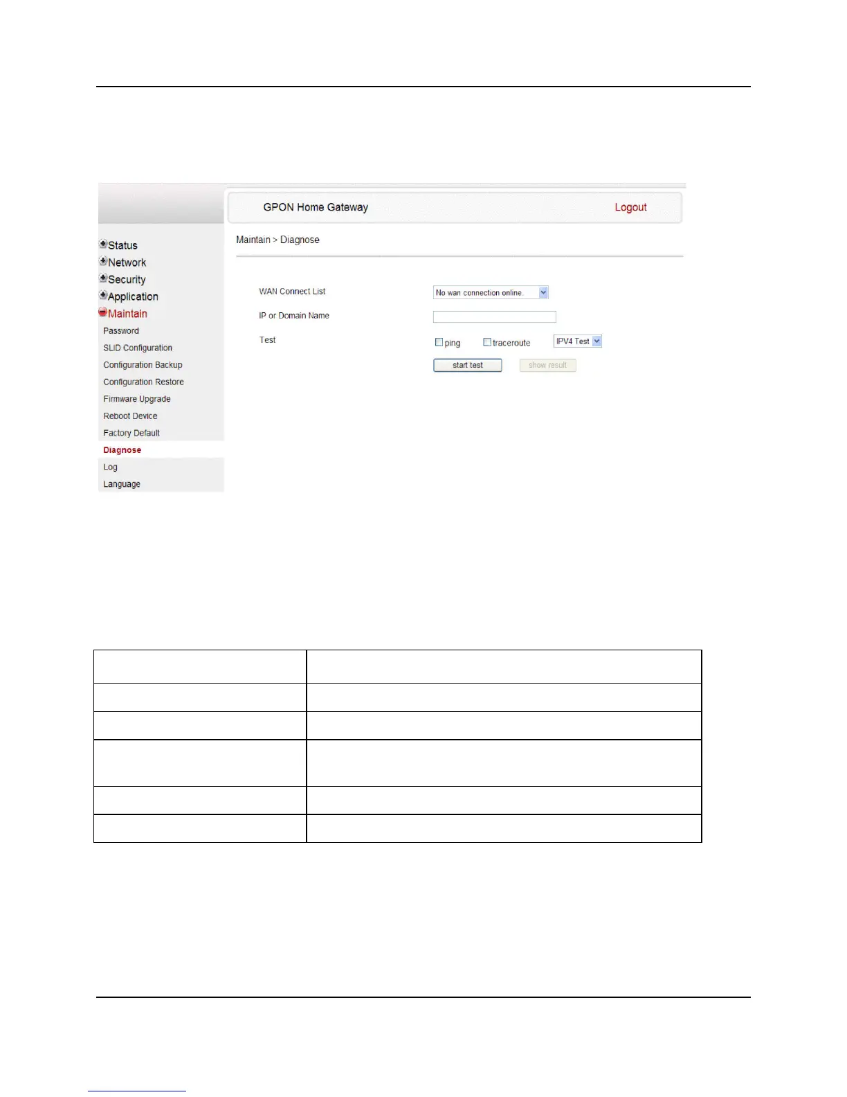 WAN Connection List Select WAN connection for testing